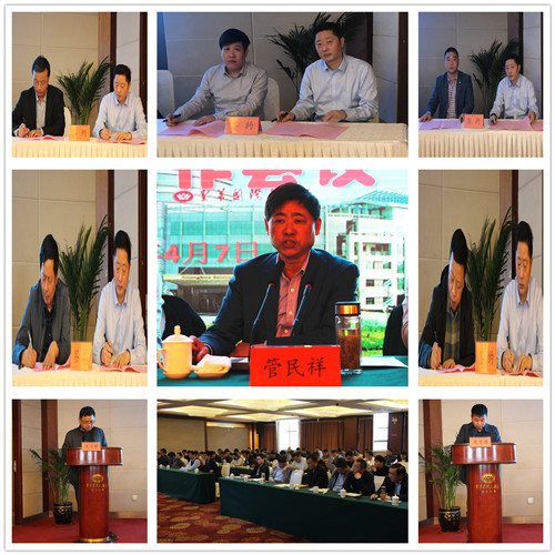 總經理管民祥主持會議并作了薪酬改革動員報告,副總經理張幫華宣讀改革辦法,分公司及部門負責人依次上臺簽訂了2019年目標責任狀。副總經理金大德、副總經理黃益寶、高郵分公司經理王迎平分別作了表態發言。工程部經理助理黎健通報了一季度質量安全檢查情況及下一步工作。
