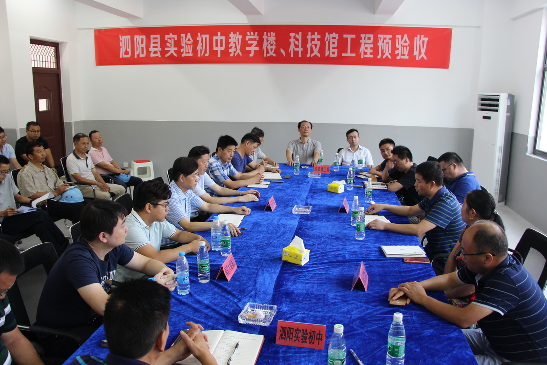 由泗陽縣住房和城鄉(xiāng)建設(shè)局、泗陽縣質(zhì)監(jiān)站、監(jiān)督辦等單位組成的驗(yàn)收小組深入施工現(xiàn)場,實(shí)地查驗(yàn)工程質(zhì)量,仔細(xì)審閱竣工資料,嚴(yán)格依據(jù)規(guī)范驗(yàn)收。在教學(xué)樓舉行的初驗(yàn)評審會上,項(xiàng)目經(jīng)理周軍將項(xiàng)目施工情況向驗(yàn)收組作了匯報,設(shè)計方南京大地建設(shè)集團(tuán)有限公司、監(jiān)理方江蘇興盛工程咨詢監(jiān)理有限公司分別作了匯報,參加驗(yàn)收的各方領(lǐng)導(dǎo)分別作了驗(yàn)收評價。認(rèn)為該工程建設(shè)規(guī)范合法、工程實(shí)體質(zhì)量及感觀質(zhì)量符合設(shè)計及規(guī)范要求,材料使用質(zhì)量合格,一致同意通過預(yù)驗(yàn)收。