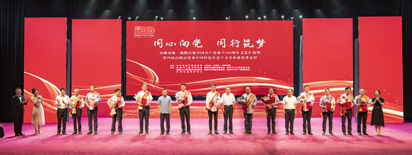 同行筑夢”—高郵市統(tǒng)一戰(zhàn)線慶祝中國共產(chǎn)黨成立100周年文藝匯演暨第四屆高郵市中國特色社會主義事業(yè)建設(shè)者表彰活動在文體中心舉行。揚州市委統(tǒng)戰(zhàn)部副部長、市工商聯(lián)黨組書記陳榮進,市委統(tǒng)戰(zhàn)部副部長、市民宗局局長朱建明,市僑辦副主任李越平,高郵市委副書記鄭志明,市委常委、統(tǒng)戰(zhàn)部部長、宣傳部部長楊文喜,市人大副主任楊向東,副市長王薇等市四套班子領(lǐng)導(dǎo)觀看演出。集團董事長管民良作為受表彰人員應(yīng)邀出席。