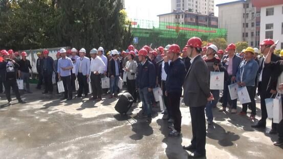 4月9日下午,泗陽縣住建局在集團集團公司承建的泗陽縣實驗初級中學工程項目舉行建筑裝配式施工現場觀摩會。住建局周娟局長蒞臨現場視察,質安站、泗陽縣相關施工、監理企業負責人、各在建項目部經理、項目總監、專職安全員等200余人參加了此次觀摩。集團總經理管民祥、宿遷分公司經理湯真標、項目經理周軍等陪同觀摩。