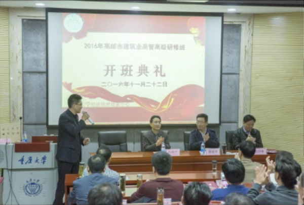 重慶大學(xué)繼續(xù)教育學(xué)院副院長馮清平介紹了重慶大學(xué)的發(fā)展歷程、辦學(xué)理念、治學(xué)思想和學(xué)術(shù)地位,對繼續(xù)教育學(xué)院學(xué)科以及培訓(xùn)建筑業(yè)企業(yè)高層管理人員的工作情況作了說明。潘建奇副市長分析了我市建筑業(yè)企業(yè)面臨的新形勢,闡述了本次在重慶大學(xué)舉辦筑業(yè)企業(yè)高層管理人員專題研修班的重要意義。