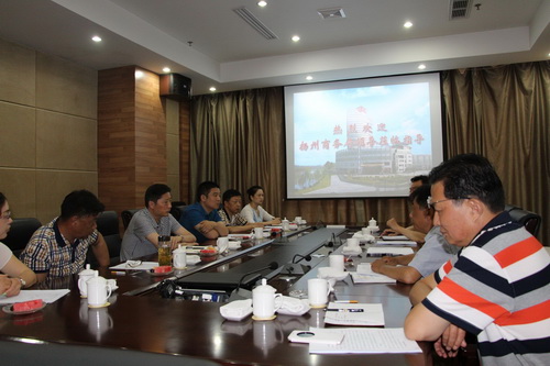 7月13日上午,揚(yáng)州市商務(wù)局外經(jīng)處潘陽春處長(zhǎng)、王棟梁副處長(zhǎng)在高郵市商務(wù)局張鋒局長(zhǎng)、盧安偉副局長(zhǎng)、邱昆科長(zhǎng)的陪同下,來我公司考察。董事長(zhǎng)管民良、副總經(jīng)理黃益寶等接待了考察團(tuán)一行。