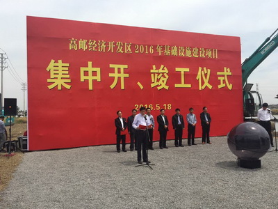 開工儀式上,集團董事長管民良代表開發區九期工程施工單位致辭,他首先對高郵市、開發區政府對該項目前期工作支持表示感謝,集團將抽調精兵強將組成高效的項目管理團隊,精心組織施工方案,以多年來與相關單位合作經驗為基礎,嚴格抓好施工進度、質量、安全管理和文明施工等各項工作,打造優質工程,回饋高郵市各級領導長期以來的關心和支持。