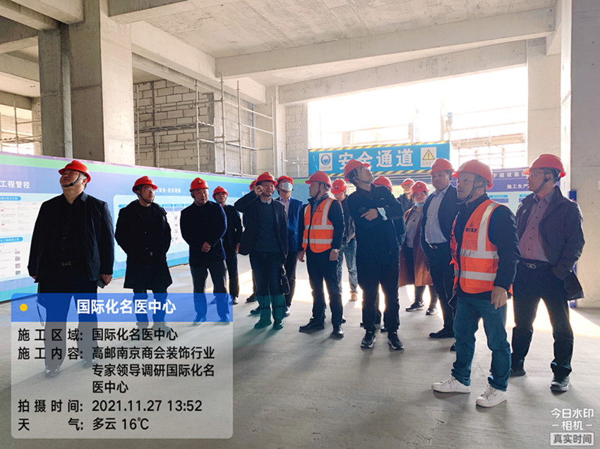 專委會一行首先集體觀摩集團(tuán)南京公司的國際化名醫(yī)中心項目,南京公司副總經(jīng)理周月波、項目經(jīng)理陳超從安全文明、裝配式施工、智慧管理平臺、BIM技術(shù)等多維度、多層次向參會人員介紹了項目情況。