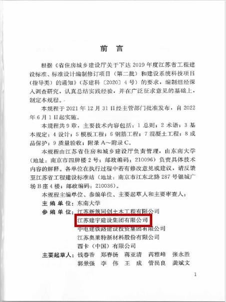 日前,建宇集團科技創(chuàng)新又結(jié)碩果——由集團參與編寫的江蘇省地方標準《清水混凝土應(yīng)用技術(shù)規(guī)程》(DB32/T 4184-2021),由江蘇省住房和城鄉(xiāng)建設(shè)廳、江蘇省市場監(jiān)督管理局聯(lián)合正式發(fā)布,于今年6月份起實施。