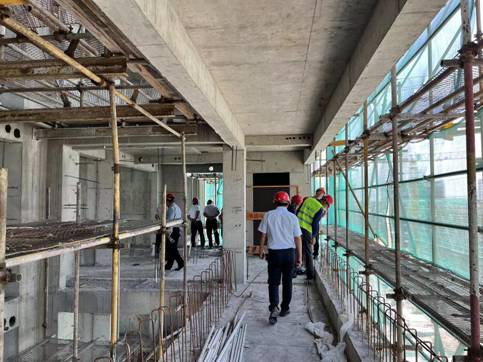 隨后全體人員分為三組,在各組組長的帶領下先后對錦麟世紀項目和天賦星辰項目現場進行了全方位的安全生產大檢查,重點排查大型機械、腳手架防護、臨邊洞口、臨時用電、消防設施設備等關鍵部位。