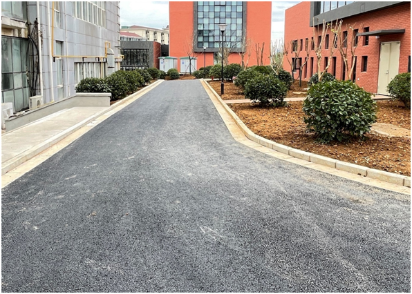 今年8月,項(xiàng)目進(jìn)入到室外配套施工,而此時(shí)又遇到了百年難遇的高溫,室外溫度高達(dá)42℃。為了確保工期實(shí)現(xiàn),市政分公司不畏高溫,經(jīng)過30天的高溫奮戰(zhàn),于9月初完成道路瀝青攤鋪。