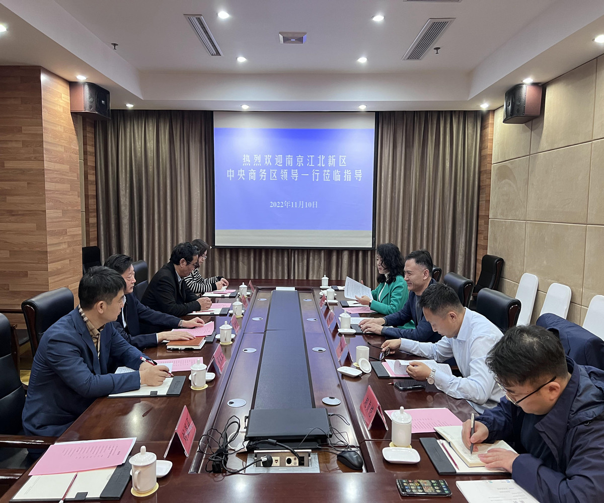 11月10日,南京江北新區(qū)中央商務(wù)區(qū)管辦主任陳建鵬、副主任李強(qiáng)一行蒞臨集團(tuán)考察調(diào)研。集團(tuán)董事長(zhǎng)管民良、副總經(jīng)理張幫華、副總經(jīng)理黃益寶等接待了考察團(tuán)一行。