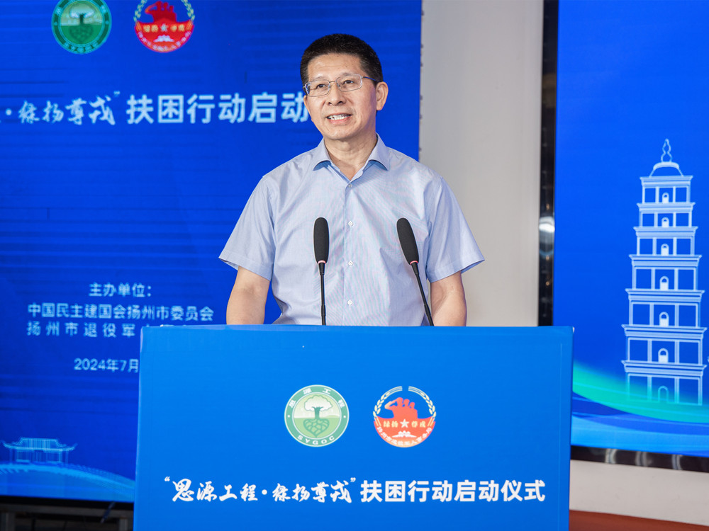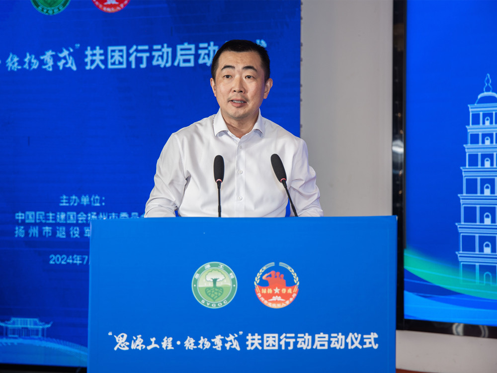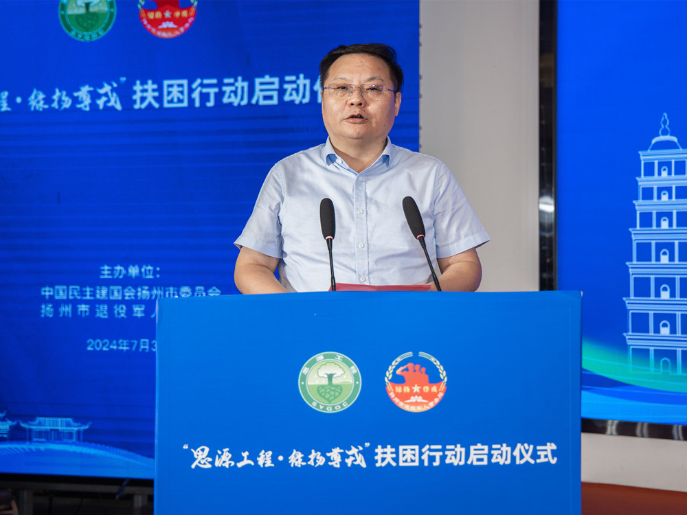 7月30日下午,由中國民主建國會揚州市委員會、揚州市退役軍人事務局聯合主辦的“思源工程·綠揚尊戎”扶困行動啟動儀式在郵舉行。揚州市委常委、統戰部部長丁四海和高郵市委書記張利、民建揚州市主委周啟泉等多位領導蒞臨現場,共同見證這一公益盛事。集團董事長管民良作為民建高郵支部副主委及這項公益活動的率先響應企業,應邀出席活動并發表了公益倡議。