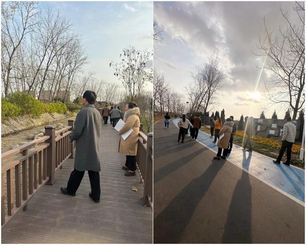 當天下午,省文旅廳文保處楊麗霞副處長、揚州文旅局文保處領導及專家一行5人抵達現場,首先沿著 2.3 公里故道沿線全面踏勘,重點核查文物本體保護、透水混凝土路面鋪設、智能化照明系統等關鍵節點,對文化遺產保護與市政基礎設施的融合實踐進行細致檢查。